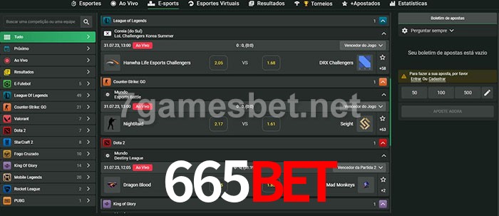 O 665bet oferece uma grande seleção de opções de apostas em e-sports com probabilidades competitivas